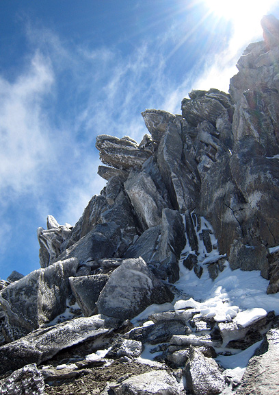 This is what the ice looked like on the most northerly, shaded and wind-ward side. Don't even think about stepping on these rocks! |