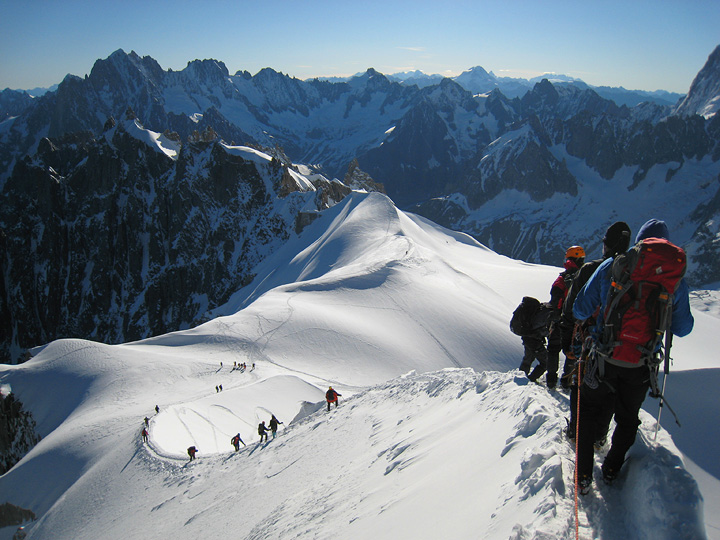 Looking towards Mont Blanc from the Arête des Cosmiques. |