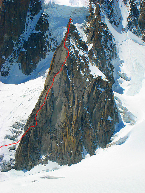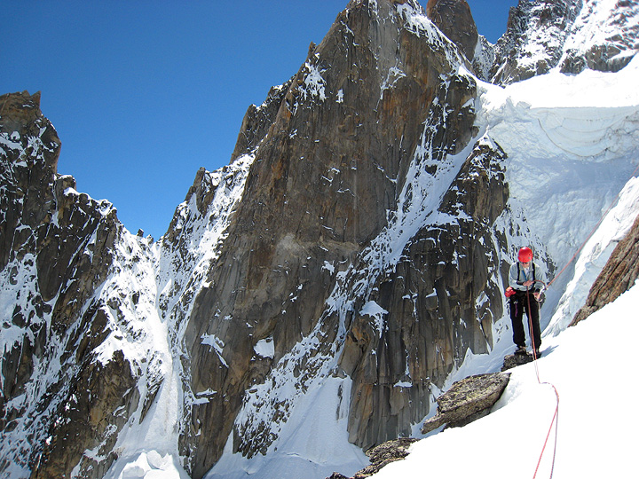 On the fourth day, we climbed the East Ridge of the Pyramide du Tacul. This is a fun, oh, let's call it 10-pitch, rock route on incredibly good granite. |
