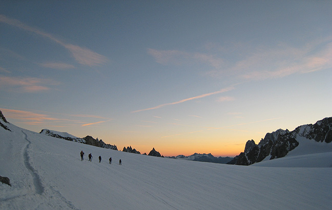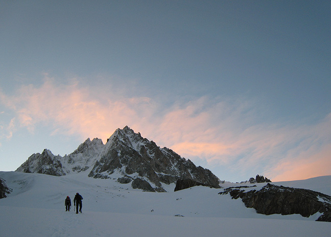 The following morning Kathy and Ken headed off for a traverse of the Aiguille d'Entrèves in a gorgeous sunrise. |