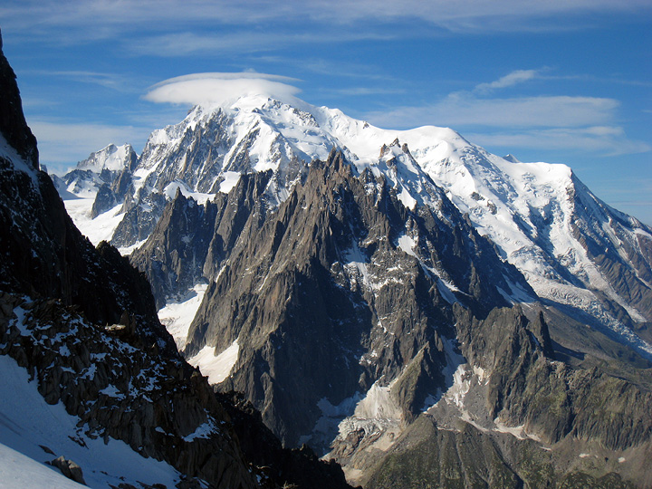 For our first climb we did the Petite Aiguille Verte. This view of Mont Blanc is from the top of the Grands Montets cable car lift. |