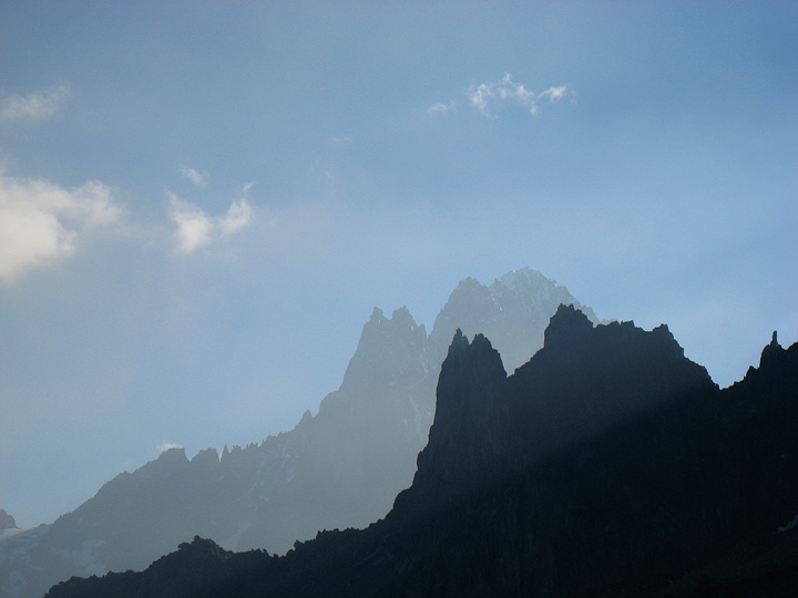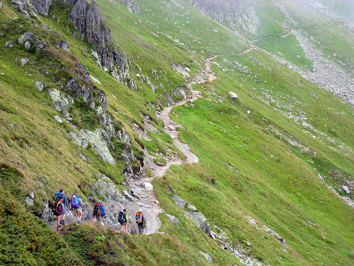 The next morning the weather was better, if still a bit cloudy. Here we head up towards the Aiguille du Tour. |