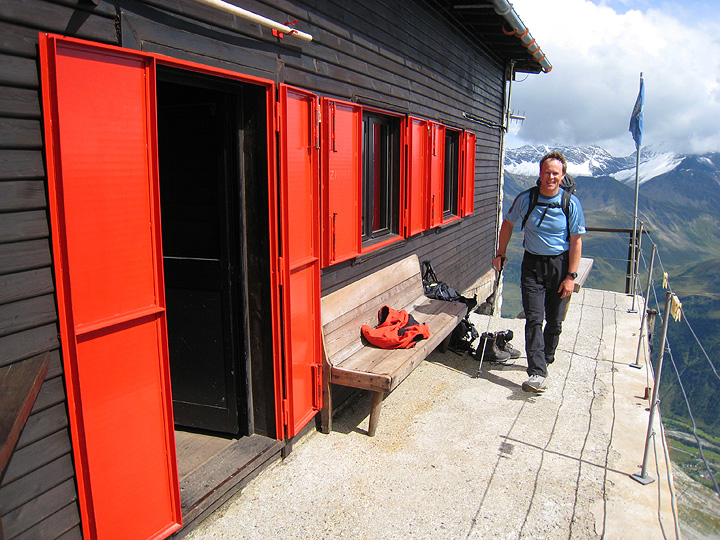 Arriving a the Bocallatte hut. Much to our surprise, we were the only climbers there. That's good news in general, but did mean we had to punch the track in the new snow ourselves, as nobody had been up the peak since the storm. |