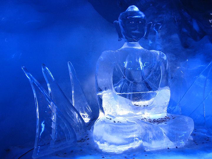After our climb, with a bit of time still on our hands, we visited the ice grotto near the summit of the Klein Matterhorn. Among other oddities is an icy Buddha. |