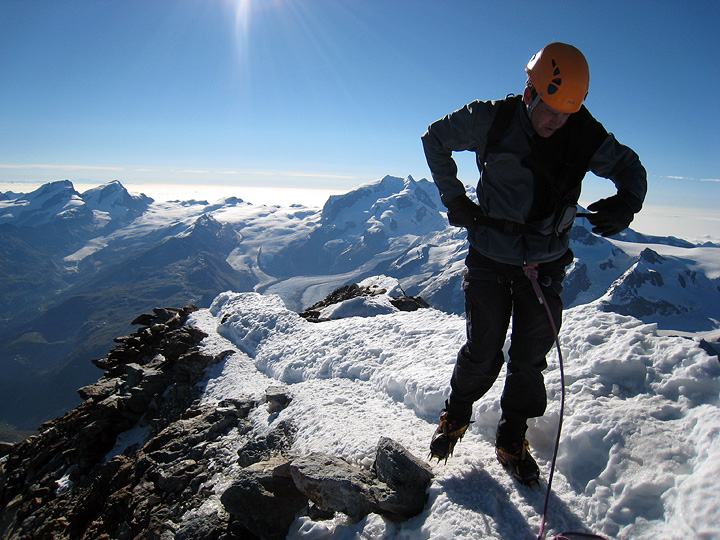 On the summit of the Matterhorn. It is 8:30 in the morning on a beautiful day. |