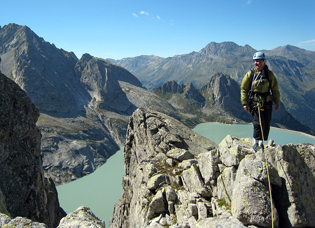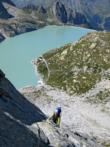 Great quality granite, high up on the Punta Albigna, overlooking the reservoir and the hut. |