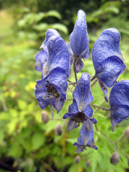 Having no botanical background, I would love it if any viewers can fill me in on the identity of these flowers. This is clearly some kind of Monk's Hood... |