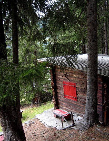 In the next couple of days we tried to do some rock climbing, but the weather really was quite un-cooperative. Being in the neighborhood of the Swiss National Park, we took advantage of the opportunity to do some hiking and sight-seeing. This is just a cozy little cottage in the woods along our walk. |