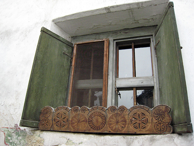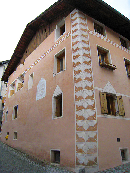 ...and the so-called "Sgraffiti"—geometrical designs and fanciful patterns painted or scratched on the surface of the houses' thick walls. |