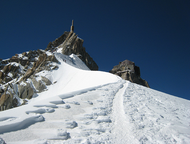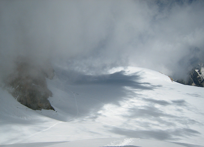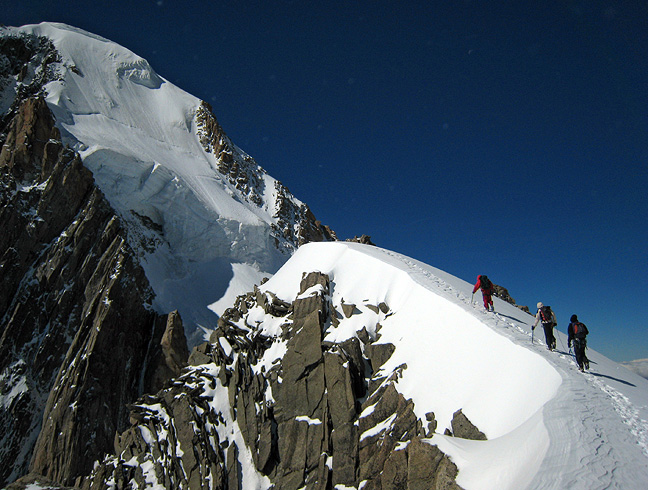 The following day, back up and over the Aiguille du Midi (the ridge is really knife-edged this year!) and to town for a rest and recuperation, before tackling the "Big One". |