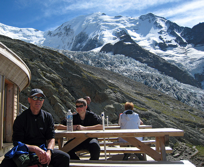 | David and Brian Innes traveled from Marin County, CA to climb Mont Blanc with Kathy. David is a seasoned mountaineer, while Brian was just cutting his teeth. In a manner of speaking of course; no (visible) bodily injuries were sustained. |
