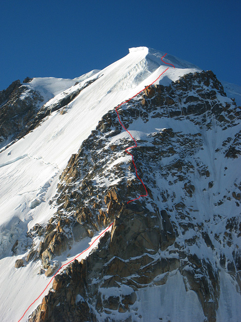 Our objective for the day, the Contamine-Grisolle route on Mont Blanc du Tacul. This is a fun climb, and was in perfect condition. |