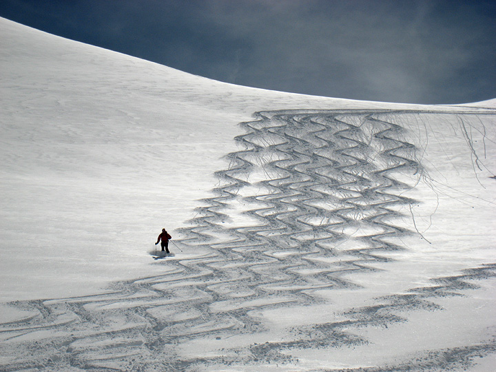 Once again milking due north-facing slopes, we tried to avoid the heavy stuff and stick to the fluff. With some success, as you can see! Not too shabby. |
