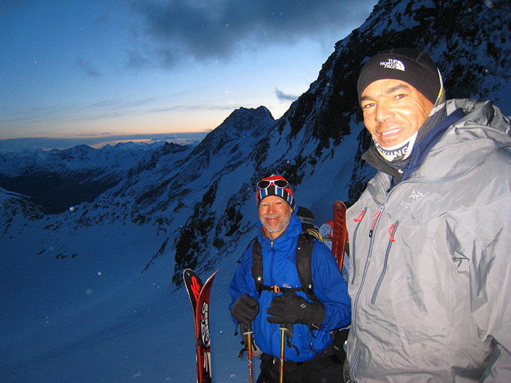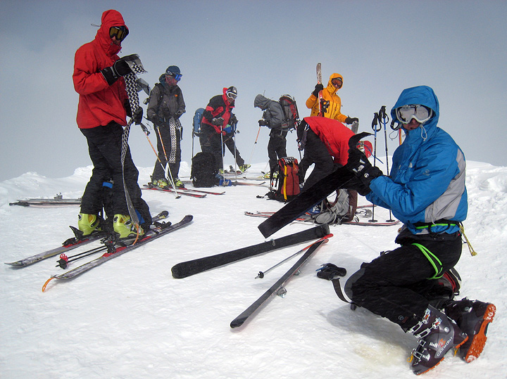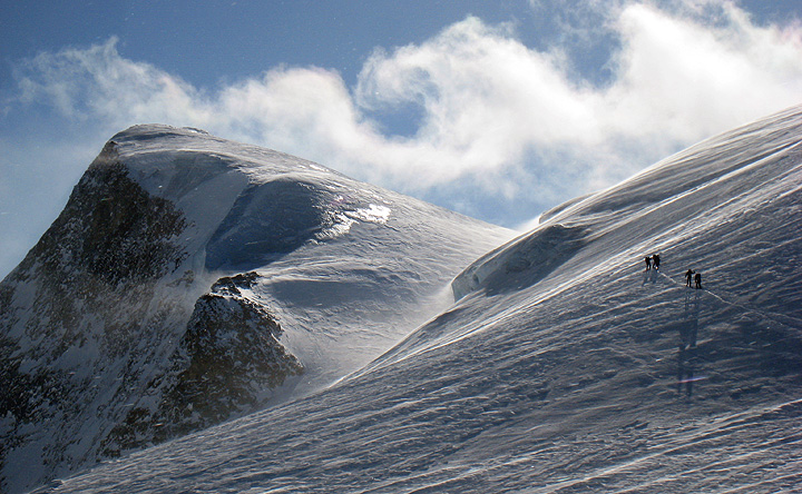 The transition on the summit of the Pigne d'Arolla, in a cold wind. |