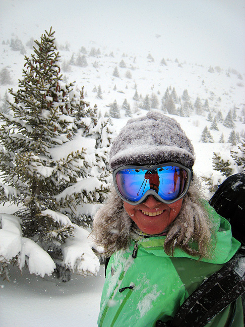 After lunch we followed another entreprising party up a very DEEP track they beat through the meter of new snow that had fallen in the previous 24 hours or so. The sun breaks through tantalizingly.... |
