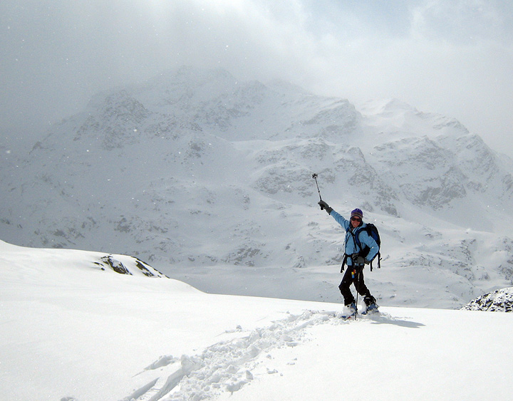 | Our Ortler tour this year contained all the mix of weather that has built this year's phenomenal snowpack in the Alps and elsewhere. Normally a "spring tour", this year we were walking in a Winter Wonderland. |