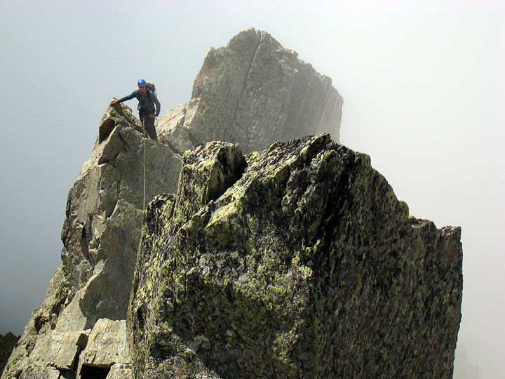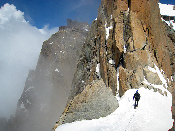 Our first climb, the Arete des Cosmiques on the Aiguille du Midi. |