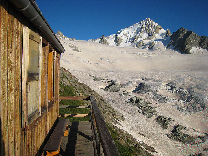 Looking up at the Aiguille du Chardonnet from the old Albert Premier hut. |