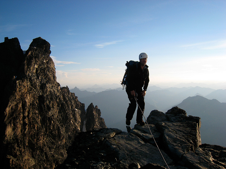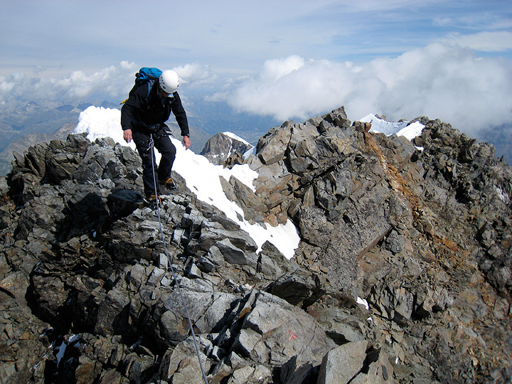 Another climber on the west ridge of the west summit of Piz Palu. |