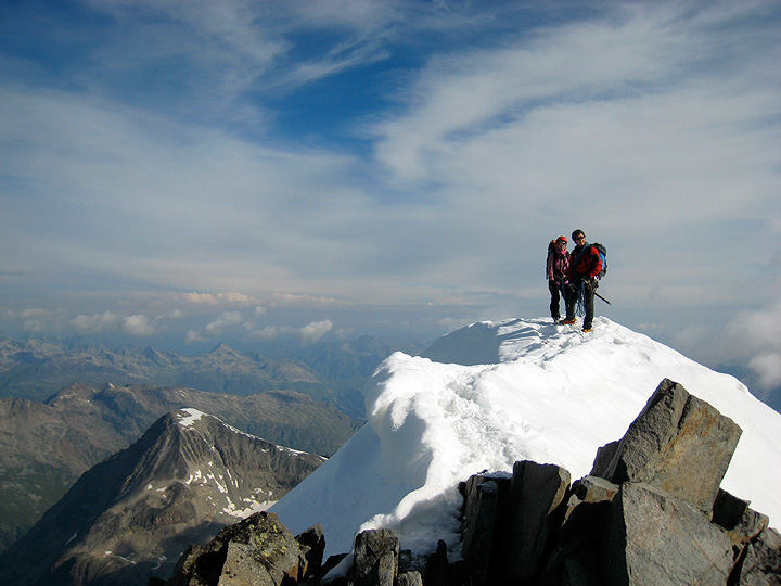 The very final steps to the summit. We arrived at the top just in time for a few quick views before the clouds came in for our descent to the Marco e Rosa hut. |