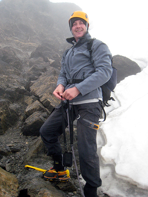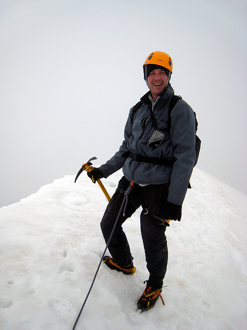 On the summit of the Wetterhorn. This is normally a very scenic route, but unfortunately not on this day. |