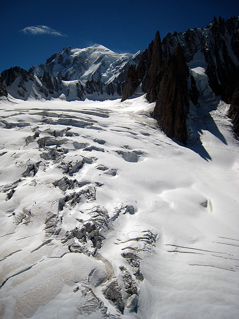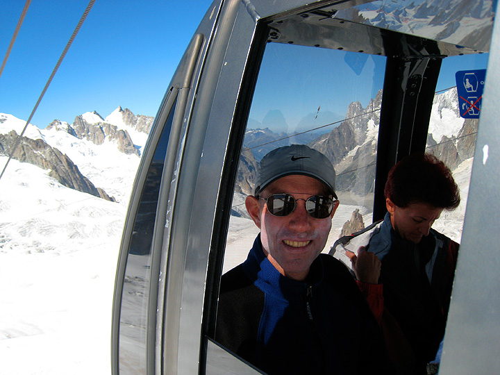 Looking towards Mont Blanc as we ride the lift back towards the Aiguille du Midi. |