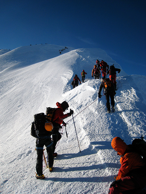 With clear, if cold weather, and good climbing conditions, the Gouter route is busy. |