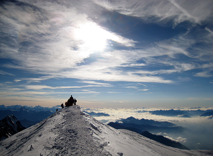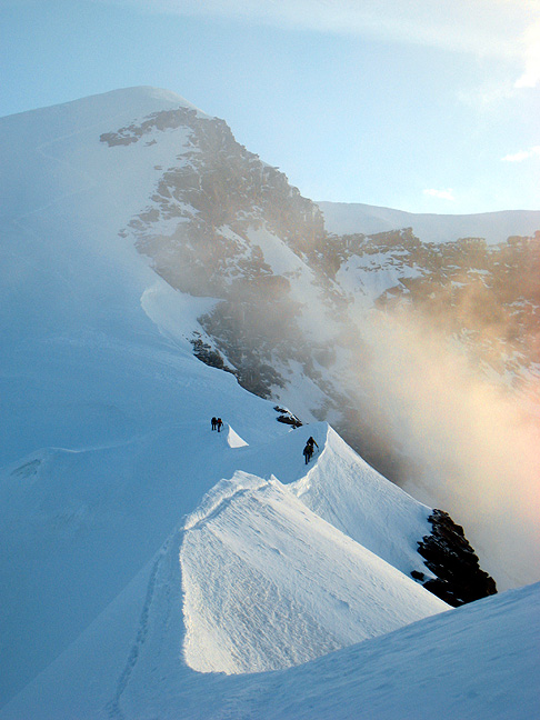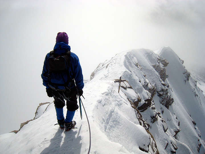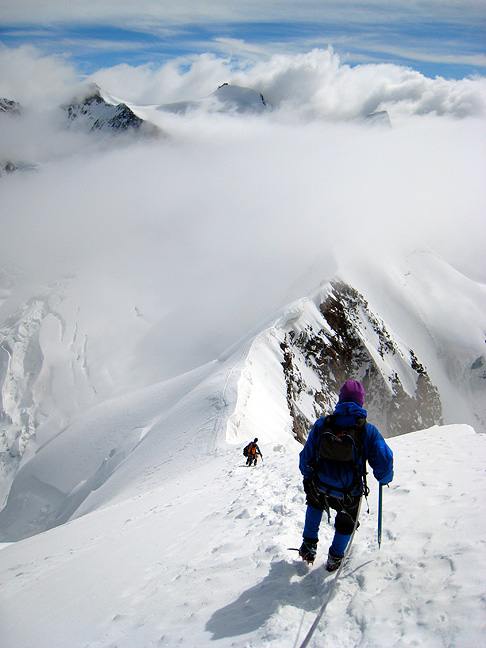 The Liskamm is known for its knife-edge summit ridge. The extreme exposure made for some psychologically taxing moments. |