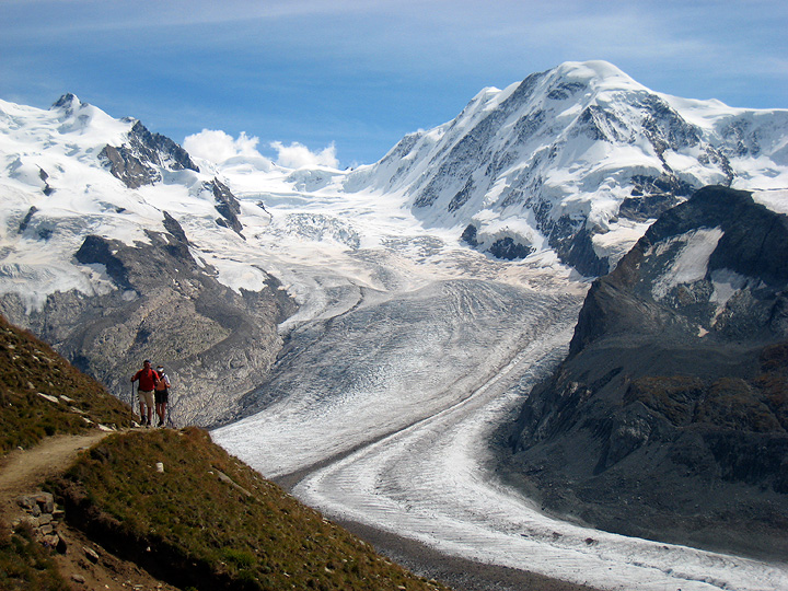 Looking back up towards the Liskamm, on the right, and the Dufourspitze on the left. |