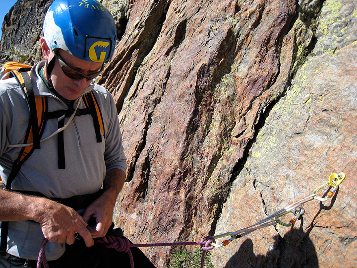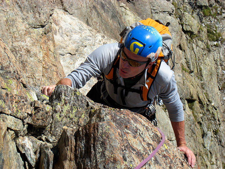 With some marginal weather in the forecast, we chose another rock route, this one on the Jegihorn. We did a route called "Panorama" on the eastern edge of the South Face. |