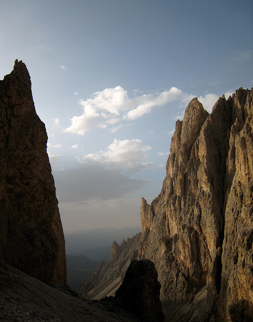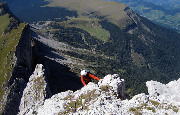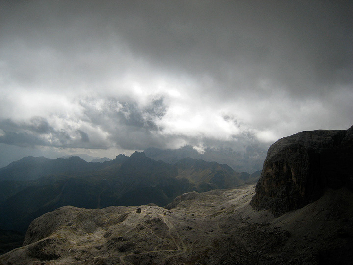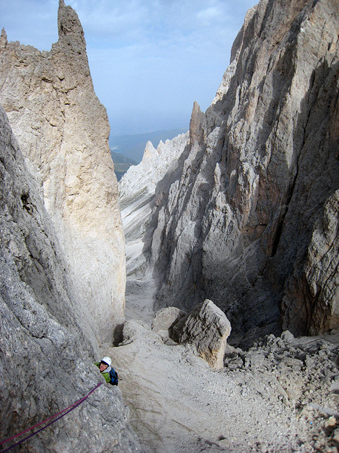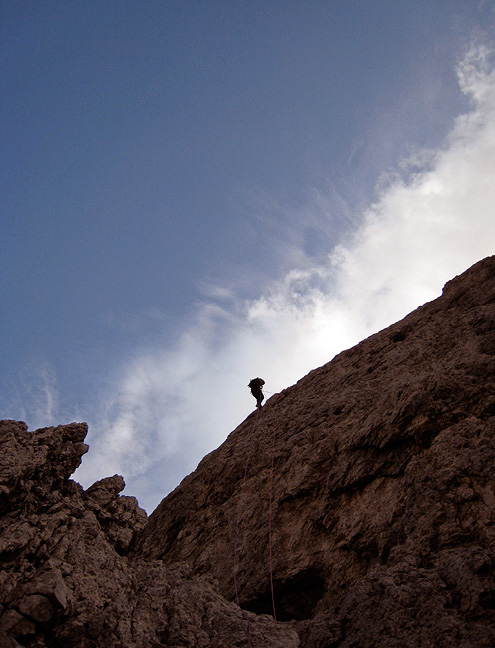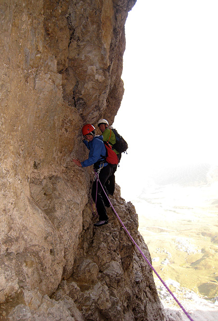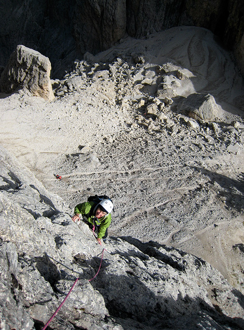 The following day rain threatened by the time we got close to our selected climb on the Boèseekofel... |