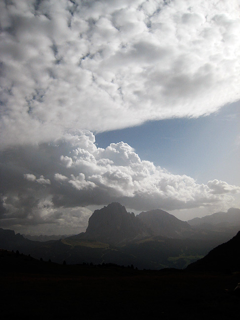 On the way back we stopped for a cool drink at a little chalet-restaurant, and enjoyed the harmless build-up of cumulus cloud as evening set in. |