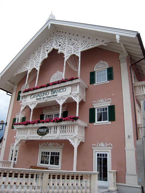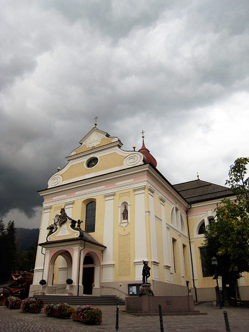 Back in Ortisei/St. Ulrichs, I can't wrap this up without a few shots of this quaint and attractive little town. The church before another shower. |