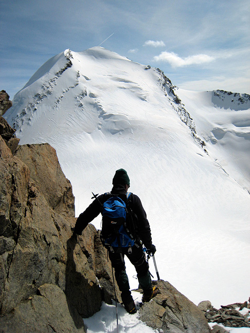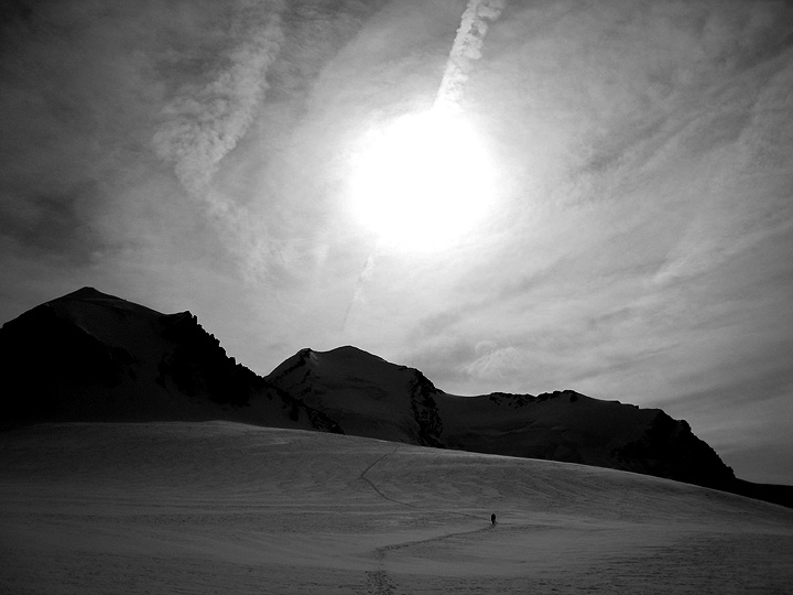 Next on our agenda was a climb of Pollux, between Zermatt and Cervinia. High clouds announce a change in the weather. |