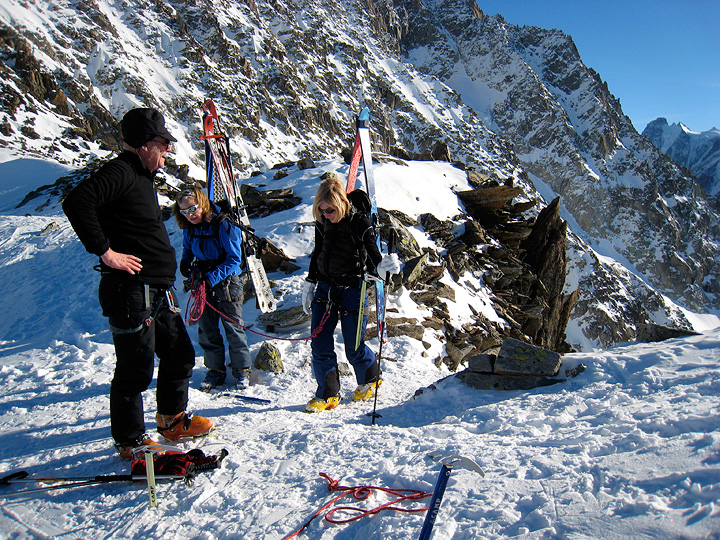 | Diana and Marcus Collie had already signed up for our Ortler tour in April. They came out to the Chamonix valley to do a bit of training and preparation for that tour. We spent a day skiing over the Col du Passon to Le Tour. |