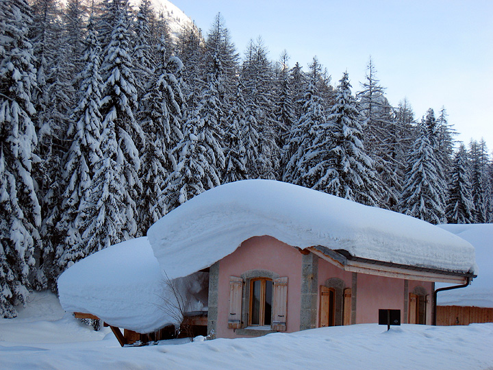 No pictures of the descent (which was beautiful, untracked powder most of the way), we were too busy enjoying it. But back at the train, you can see what a heavy snow year this winter was! Days like this, in a place like this, are magic. |
