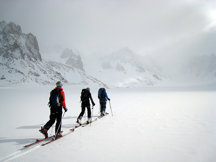 Bundled up and moving uphill, body temperature was manageable. But the howling winds above kept us from topping out on our objective (still, we came close). |