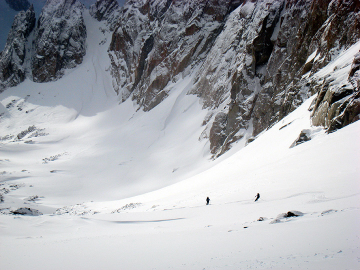On the way down, we managed to link together a few passages where the wind had deposited soft snow, and where the base was firm enough to stay on top! Ahhh... |