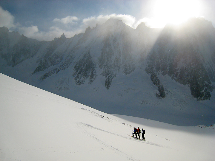 | Emma and Adrian Read, visiting family in Les Houches, did a Valentine's Day tour with Kathy to the Col du Tour Noir on the Glacier des Améthystes. |