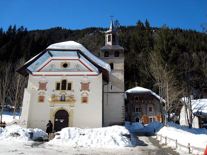 Our route back to the car took us by the beautiful and historic chapel at Notre Dame de la Gorge, well known by Tour du Mont Blanc through-hikers. |