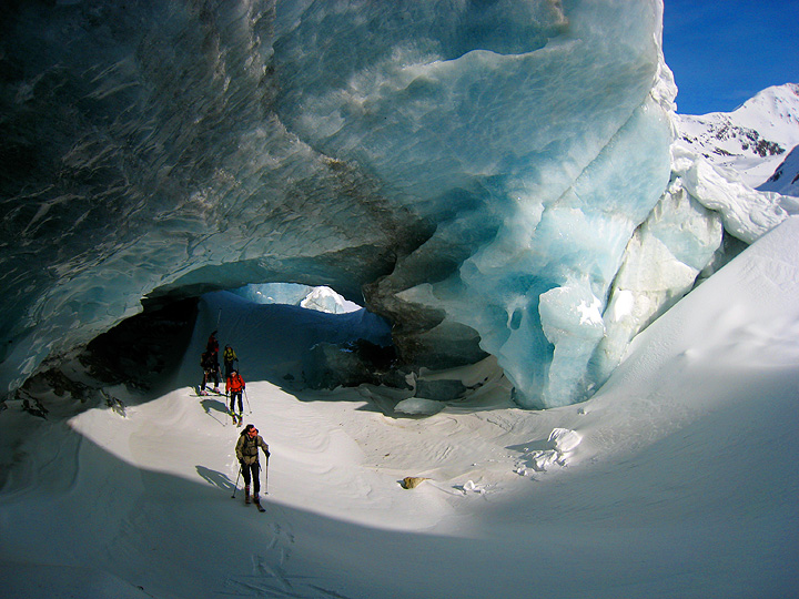 On day 3 we decided to climb Pizzo Tresero. Shortly after leaving the hut, we found this irresistible feature at the toe of the glacier. |