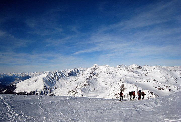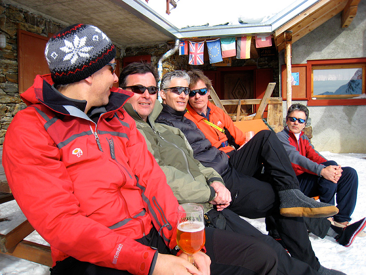 | A group of friends living in the UK joined us for an Ortler trip this year. This was their first hut-to-hut ski mountaineering tour, though they'd all done lots of off-piste and heli-ski adventures. |