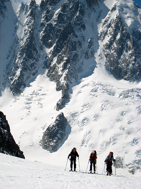 Tough snow, but great weather on the upper Vallée Blanche. |