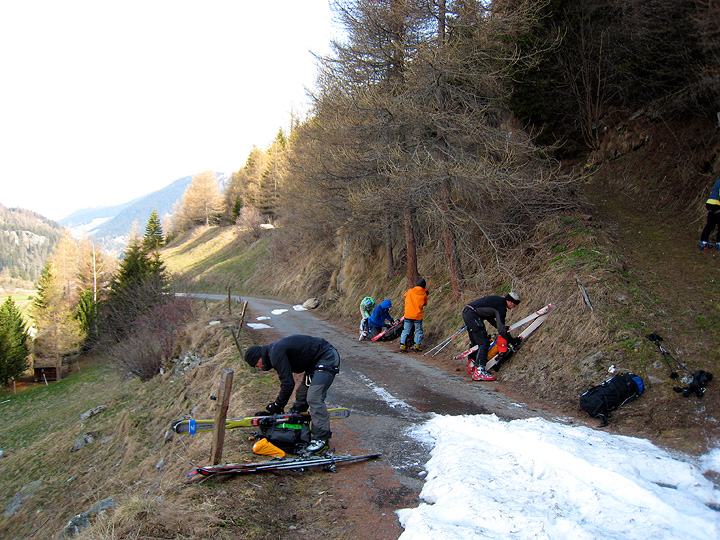 Waiting for the taxi to pick us up in Bourg St. Pierre. |