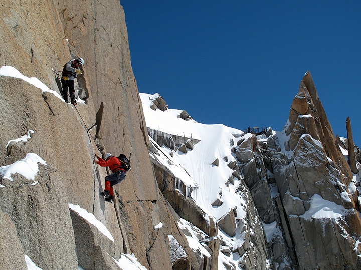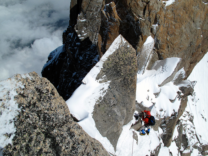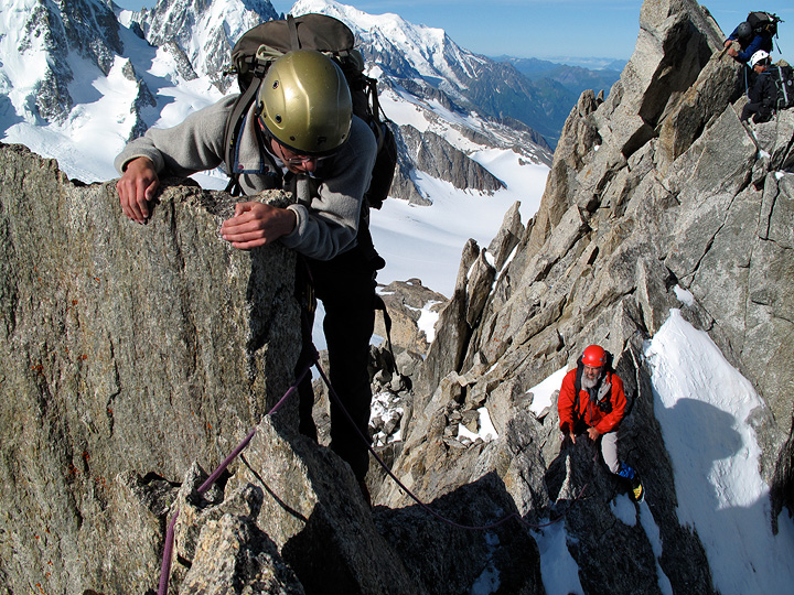 On our second day Mark headed up the Cosmiques Arête with Scott and Lincoln. |