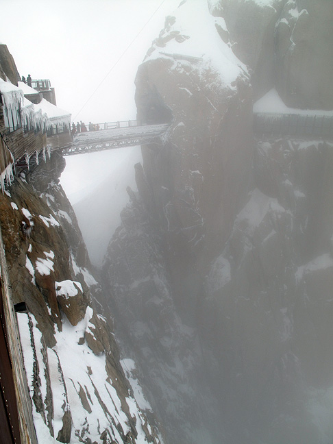 But by the time we meet up again with the boys near the top of the climb back into the Aiguille du Midi téléphérique station, we too are engulfed in the fog. Last steps... |