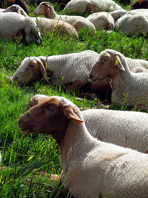We passed some contented-looking sheep along the way, huddled together in the sunshine for warmth while their tending shepherd and dogs napped nearby. |