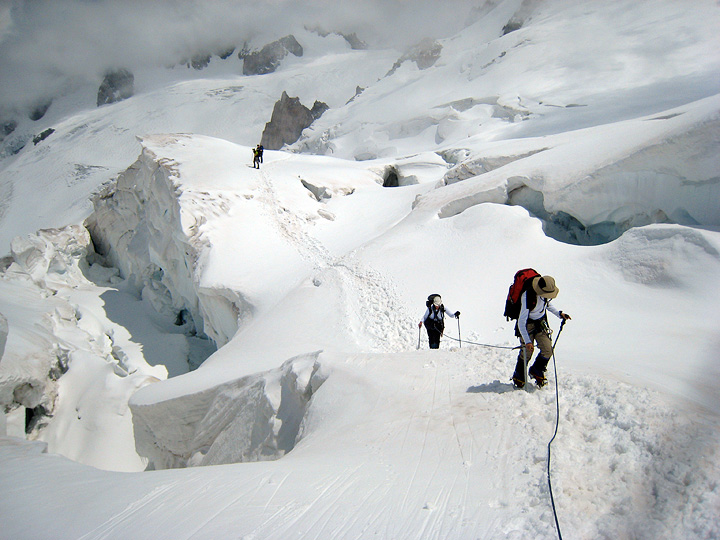 On the last day, Mark enjoys great weather once more on the Aiguille d'Entreves with Matt and Lincoln. |