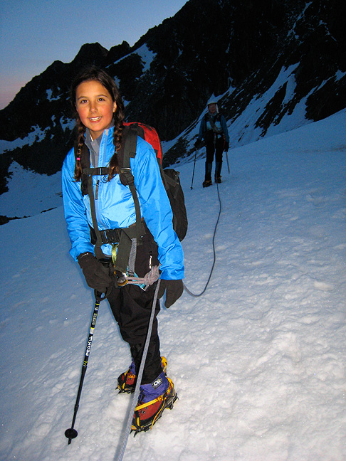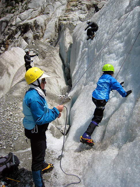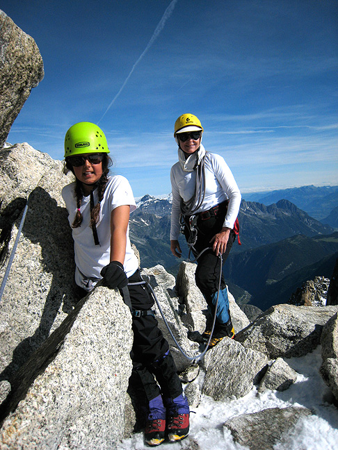 | Matt Scott (Kyajo Ri 2006) and his wife Minx Fuller (Kyajo Ri 2007) brought their kids Lincoln and Julia over to the Chamonix Valley this June for an introduction to the Alps. Both of us (Mark and Kathy) had the pleasure of spending 5 days on instruction, training and climbing in our "stomping grounds". |
