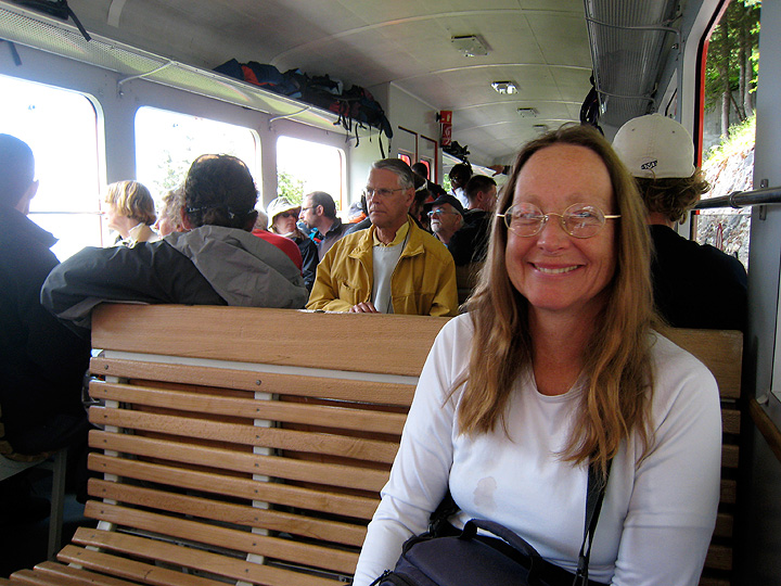 Meanwhile... Kathy heads over the Panoramic to Point Helbronner with Minx and Julia. Likewise with them, things start out well... |